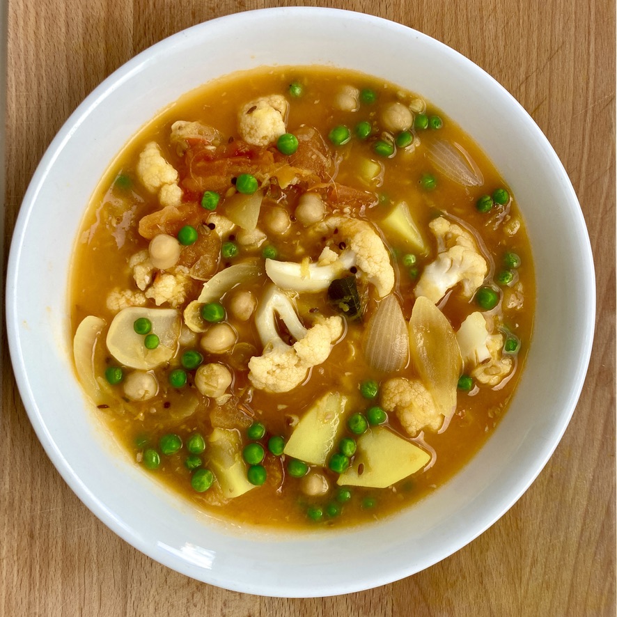 One of signature chickpea Oshomo style curries with roasted cauliflower, peas, potato and a unique Oshomo spice blend. A favourite here with the team!